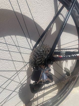 Bicicleta en perfectas condiciones, tiene unas diez o quince salidas. Me costó 1100 euros. Año 2021 tengo facturas de todo. Se puede ver y probar, o también puedo mandar más fotos o vídeos. Se vende también con casco, guantes, gafas y calzado con calas. Los accesorios me costaron 200 euros y la bici 1100. Se vende todo por 798. Lleva todos los accesorios originales y se puede comprobar el poco uso en las ruedas que lleva también originales o en los puños.