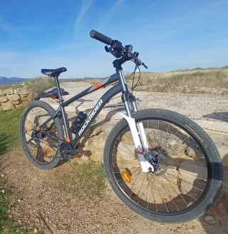 Vendo Rockrider 520 en excelente estado mecánico. Es una bicicleta ideal para iniciarse en MTB con una geometría muy cómoda. Lo mejor de esta unidad es que tiene la transmisión recién renovada, por lo que funciona como el primer día: NUEVO: Desviador trasero SRAM X3. NUEVO: Kit de platos delanteros. NUEVA: Cadena SRAM específica para este grupo. Ruedas: 27.5" con llantas de doble pared. Frenos: Disco mecánicos revisados. Neumáticos: Vittoria Barzo delante / Schwalbe Smart Sam detrás La bici está limpia, engrasada y lista para salir a la montaña sin gastar un euro en revisiones. Se puede ver y probar en Logroño.