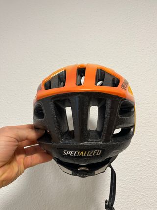Casco de ciclismo de la marca Specialized. - Diseño con ventilación. - Color naranja y negro. -Talla M/L 54/62cm