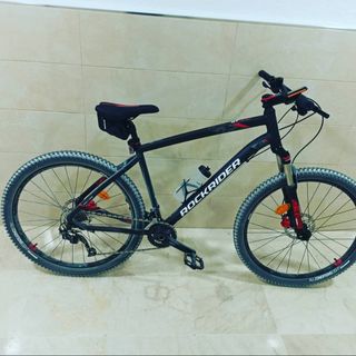 Bici de montaña rockrider. En perfecto estado. Muy poco uso, siempre guardada en trastero. Ruedas, frenos, cableado, manetas, sillín y todos los componentes sin desgaste alguno. 27,5 pulgadas talla M