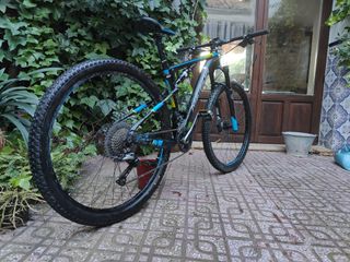 Por lesion, se vende bicicleta doble de carbono talla M. Hay que tubelizar rueda trasera se pinchó, puse recamara. Pendiente mantenimiento suspensiones ( por tiempo) los hice hace 2 años y no la he vuelto a usar, la suspension central da aceite( cambio reten), posibilidad de pasar mantenimientos, tubelizar e incremetar 140€. La horquilla lefty es una pasada y ligera. Se entrega en monoplato o biplato. Manillar y tija de carbono. Actualmente biplato La bici está en villargordo, puedes verla y probarla sin compromiso