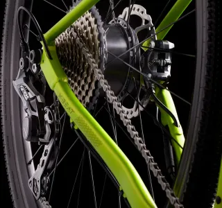 De 29”, con un cuadro B-Pro de Aluminio 6061 hidroformado, cambios de Shimano, Deore Shadow atrás y M190 delante, y unos fiables frenos de disco también firmados por Shimano, los BR395. La horquilla, SR Suntour XCM-RL, se puede bloquear desde el manillar
