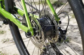Bicicleta Gravel MMR X-Beat en color verde lima. E-bike MMR X-BEAT Talla M Cuadro: Aluminio 6061 T6 hidroformado, DB. Batería integrada. Horquilla: X-Beat- G1 Carbon Concept Lite Fork. Pedalier: Shimano GRX 600 42T Cambio: Shimano GRX RX812 Mando: Shimano GRX 600 11v Casete: Shimano SLX M-7000 11-42 Cadena: Shimano HG-601 Frenos: Shimano GRX BR-RX400 (F y R) Discos: 160/160 mm Dirección: Ritchey Pro Integrada Tapered 1.5 Potencia: Ritchey Comp 4 Axis Manillar: Ritchey Comp curve Sillín: Selle Italia X3 Boost Tija de Sillín: Ritchey Logic 27.2 mm Ruedas: XCR 7400 DW Aluminium Motor: EBIKE MOTION 250MAHLE