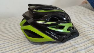 Casco de bicicleta Cannondale en excelente estado, casi sin uso. Diseño moderno y seguro. - Talla M-L. - Color negro con detalles en verde lima. - Marca: Cannondale.