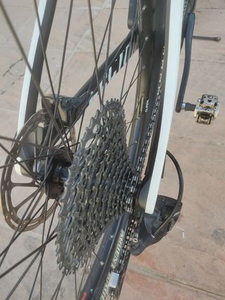 vendo bici con varias mejoras talla M (1,79 mido) super ligera, casi todo en carbono a falta de las llantas suspension delantera Brain inteligente horquilla de carbono para pisteo frenos Db9 transmision sram con monoplato ovalado y cassete e thirteen. solo cambio por alguna de carretera con frenos de disco.