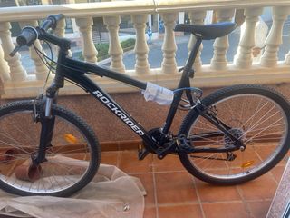 Bicicleta de montaña 26" aluminio Rockrider ST 50 negro. Talla M (165-174cm). Con muy poco uso, puesto que me regaron otra, además antes se le han cambiado los pedales y la rueda trasera que se puede ver que son nuevos, incluso lleva aún la etiquieta de la tienda.