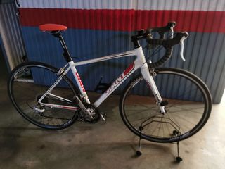 Vendo bicicleta Merida Scultura 100 en buenas condiciones. Es una bicicleta de carretera ligera. Talla s/m cuadro de aluminio y horquilla de fibra. Grupo Shimano 105 plato compact 50/34 y cassete 11/28. Llantas de aleacion de perfil alto 40mm. protector de camaras y cubiertas nuevas.Encintado de manillar cambiado recientemente. Pedales automaticos doble cara Shimano.