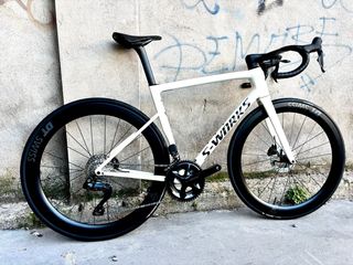 Bicicleta de carretera S-Works Tarmac en color blanco. Talla 56. Cuadro de febrero del 2025. Grupo Shimano 105 electrónico (NUEVO A ESTRENAR). Ruedas DT Swiss ARC 1600 ( NUEVAS A ESTRENAR). Sillín (NUEVO A ESTRENAR). EL PRECIO LO DICE TODO!
