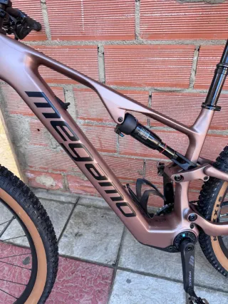 Bicicleta Megamo Native 20 en color marrón y talla M, vinilada entera. Está casi nueva a estrenar, solo un pequeño roce en el cuadro abajo al lado de la M. Tiene 30km de uso. Cuadro Native Full Carbon, TQ Specific, Boost 12x148mm, Wheel travel: 150mm, Tire clearance 29x2.6 Horquilla Rock Shox Lyrik, 150 mm, 15x110mm BOOSTe Amortiguador Rock shox Deluxe Select + Motor TQ HPR50 / 50 Nm Batería Integrated LI-ION Battery, 360 Wh Consola TQ HPR50 Display Manetas de cambio Shimano SLX M7100 12s Desviador Cambio Shimano XT 8100 12s Frenos Shimano MT410 hydraulic disc 4-Piston, Discos de freno 203mm Cassette Shimano CS-M7100-12 10-51T