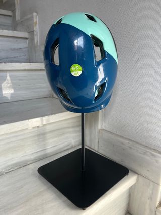 Casco para bicicleta de la marca Decathlon, talla XS. Es de color azul con detalles en turquesa. - Marca: Decathlon - Talla: XS - Color: Azul y turquesa