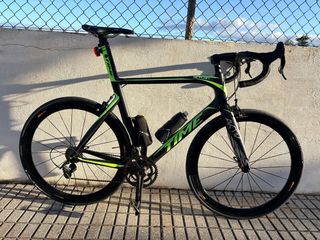 Bicicleta de carretera TIME de alta gama, con cuadro de carbono. Un modelo diseñado para un rendimiento superior. - Cuadro de carbono. - Componentes de alta calidad. - Diseño deportivo y aerodinámico. Talla xs yo mido 1,69