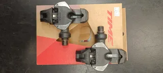 Pedales de ciclismo de la marca Time. EQUIPE PRO TITAN - Diseño en color gris y plateado. - Logo de la marca visible. - Tiene los acoples para las calas Look y también las incluyo las calas, las delanteras están algo deterioradas pero enganchan perfectamente. En su época eran los mejores pedales que había.