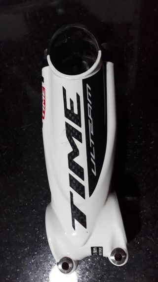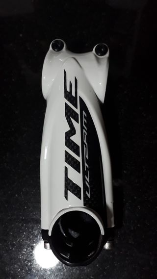 potencia original (en la ultima foto aparece el numero de serie), marca Time, modelo Ulteam, de carbono, medida de largo 110mm, para manillares de 31,8 mm de diametro, y tubo de horquilla 1,1/8". peso 129 gramos. lo tornillos son de titanio. no negociable.