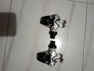 Conjunto de pedales Speedplay con calas incluidas. De los tornillos pequeños, dos son adaptados por haber perdido, pero hacen su función perfectamente. Poco uso. Look keo spd shimano favero wahoo comp time