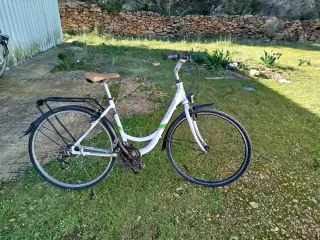 Bicicleta clásica de la marca Togano, con un diseño retro y elegante. - Cuadro de color blanco y verde. - Sillín blanco. - Guardabarros delanteros y traseros. - Portabultos trasero. - Iluminación. - Hace falta ponerla a punto