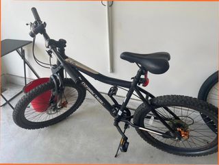 Bicicleta de montaña Triban 3 Trail BTWN con componentes Shimano2. Decathlon - Rueda de 26 pulgadas. -Para ciudad, campo y montaña . -21 Marchas, (3 platos y 7 de piñón). -Frenos V-Brake Mi hija mide 1'65cm y le va a la medida. - Cuadro de aluminio ligero -Suspensión delantera - Incluye todos los extras menos la mancha. En buen estado. Hay q hinchar las ruedas. Poco uso por tenerla en el pueblo y no ir nunca.Siempre ha estado en interior. Acabo de bajar el precio
