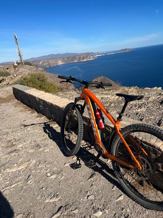 PRECIO NO NEGOCIABLE 650 Último precio lleva CYCPLUS para bicicleta. dispone de - Pantalla digital. - Muestra hora, tiempo, distancia y velocidad. totalmente nueva a estreno no tiene ni 15 kilómetros tiene pedales y potencia modificada más de 250 euros en extras está de extremo con una horquilla de suspensión RockShox que te permite superar con velocidad las piedras y los baches de los caminos, y el amplio rango de desarrollos de la transmisión SRAM NX Eagle de 12 velocidades. sillín telescópico controlado desde manillar TranzX JD-YSI34, recorrido de 150 mm, guiado de cables interno, 31,6 mm, longitud 456 mm