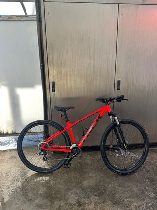 Bicicleta de montaña Trek de color rojo. Ideal para senderos y rutas. - Cuadro de aluminio. - Ruedas de 29 pulgadas. - Frenos de disco hidráulicos. - Horquilla RockShox.