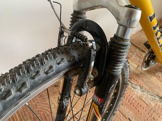 Bicicleta de montaña Trek modelo 810 en color amarillo. - Cuadro de aluminio. - Suspensión delantera. - Ruedas de 26 pulgadas.