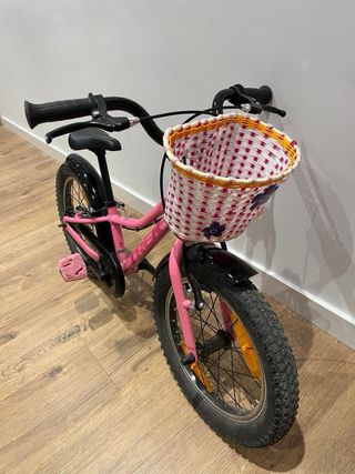 Bicicleta infantil marca Trek, modelo Precaliber 16, en color rosa. - Incluye cesta delantera. - Ruedas de 16 pulgadas. - Guardabarros delantero y trasero.