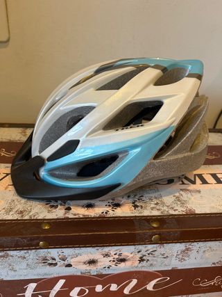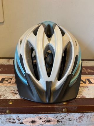 Casco de bicicleta de la marca Trek en color blanco y azul. Diseñado para ofrecer protección y comodidad. - Diseño aerodinámico. - Visera integrada. - Sistema de ventilación. - Talla 49-57 cm.