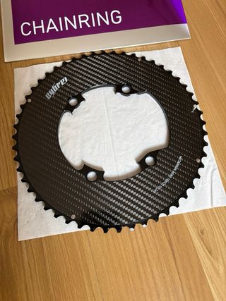 Vendo Plato Cybrei con diseño en carbono BCD 110x4, para 11/12 velocidades, de (52) dientes, completamente nuevo a estrenar!! modelo metarbon aero 3K, recién comprado en tienda Bike Gourmet por 155€ (se puede ver el tiquet en la última foto). PRECIO NO NEGOCIABLE!!! - BCD 110 mm. - Patrón de 4 tornillos. - Modelo METARBON AERO 52 Specialized, Tarmac sl8, Tarmac sl7, venge, evade, prevail, enve, roval, s-works, shimano di2, dura ace, ultegra, sram red, trek, pinarello, Orbea, factor ostro, canyon, etxeondo, garmin 1050, oakley, sillin power mirror,