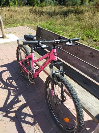 Bici de niña talla s de 26" está en muy buen estado a penas se le a dado uso. Manillar de carbono Frenos Shimano deore de zapata Horquilla zoom de 100 mm Cambio Shimano altus de 9x3v Llantas Conor y cubiertas Michelin country trail Es una bici que se ha usado muy poco está prácticamente nueva se da cuenta kilómetros con ella. Conor, WRC, Bh, Orbea, Trek, Specialiced, Bicis, Bicicleta