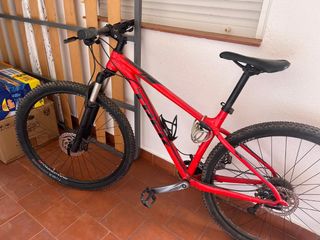 🚲 Bicicleta MTB Trek X-Caliber 7 – Alpha Gold Aluminum Se vende bicicleta de montaña Trek X-Caliber 7, en muy buen estado. Ideal para rutas de montaña y senderos, ligera y resistente gracias a su cuadro Alpha Gold Aluminum. 🔹 Características principales: Cuadro: Trek X-Caliber 7, Alpha Gold Aluminum (ligero y duradero) Ruedas: 29” Suspensión delantera con bloqueo Frenos de disco hidráulicos Transmisión Shimano de varias velocidades Color: rojo con detalles negros Talla apta para personas de aprox. 1,75 m a 1,85 m (la usaba alguien de 1,80 m) Solo habría que cambiarle el pedal porque lo ha masticado un perro.