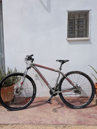 Bicicleta de montaña Trek Wahoo con ruedas de 29 pulgadas. Ideal para senderos y paseos. Perfecta como primera bicicleta de montaña, la compro mi padre hace unos años y la he usado algunas veces en la montaña pero no más de 30-40 veces, casi todo si uso a sido en ciudad (un uso mucho más relajado). Desde hace años sin usar la he engrasado y la he guardado esperando a algún comprador. - Cuadro de aluminio super ligero. - Frenos hidráulicos. - Suspensión delantera y en muy buenas condiciones. - El cambio de los sillones no le vendría mal una revisión aunque tras la limpieza y el engrase funciona de lujo Todo original, NO BAJO PRECI