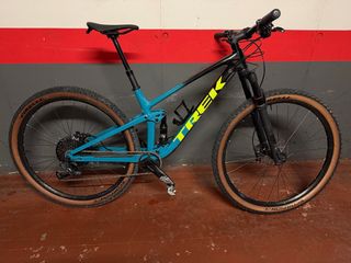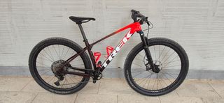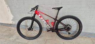 Vendo por enfermedad. Talla M, Peso 10,26. SOLO LLEVA 3000Km. -TODO es de CARBONO OCLV: -Cuadro Carbono con Isospeed -Llantas Bontrager Kovee Elite 30 Tubeless Ready CBN, ejes pasantes -Pedalier y Bielas E´Thirteen TRS Race, eje 30mm, plato 32T(regalo otro de 34T), Bielas 175mm CBN -Tija sillin Bontrager PRO CBN -Manillar y Potencia integrados Bontrager RSL CBN. RESTO COMPONENTES: -Horquilla FOX Perfomance32 -Cambio y maneta, Cassette, Cadena: Shimano XT M8100, 12V, 10-51 -Sillin Bontrager VerseElite railes austenita -Puños ESI Chunky -Freno disco hidraulico XT M8100 -Disco freno Shimano RT76 160mm -Cubiertas Bontrager XR2 Team