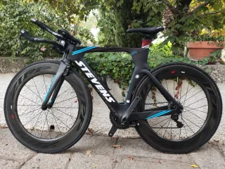 Bicicleta de contrarreloj triatlon cabra Stevens Super Trofeo. - Cuadro de carbono talla S - Ruedas Zipp - Cambio Ultegra di2 con pulsadores en los acoples