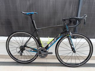 Bicicleta de carretera con cuadro completo de carbono. - Cuadro de carbono. - Grupo Shimano Ultegra y Shimano 105. - Ruedas Bontrager. - Se entrega con pedales Look. - Extras: Portabidón, bomba de aire y sensor de velocidad. Sin golpes, muy buen cuidada, liviana y lista para rodar. No recuerdo talla, pero miso 1.77 y me va de maravilla. Se vende por falta de uso.