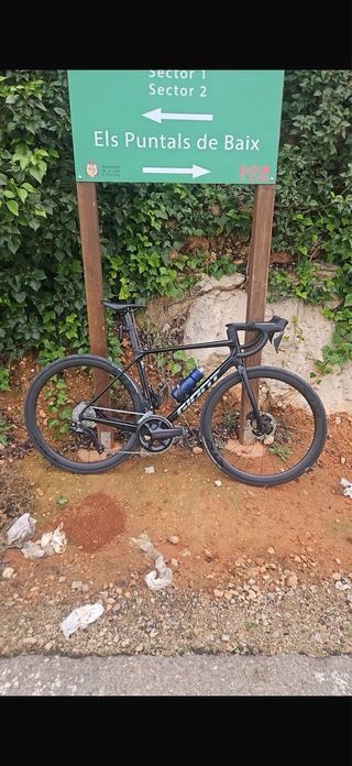 Bicicleta de carretera BH Quartz Disc Full Carbon en muy buen estado, ligera, cómoda y lista para salir a rodar sin hacerle nada. – Cuadro y horquilla de carbono. – Grupo Shimano Ultegra (manetas, cambio y desviador). – Frenos de disco hidráulicos Ultegra. – Pedalier FSA Gossamer 386. – Cassette Shimano 105 (11/32), ideal para puertos. – Ruedas Shimano RS, muy fiables. – Tija EC90 de carbono + sillín estilo racing. – Talla M (1,70–1,80 m). – Peso aprox. 8,5–9 kg. – Botas talla 41, 2 cámaras y aceite incluidos. Extras: revisión hecha el 22/09/2025, 2 portabidones y soporte Garmin. Solo 750 km reales.