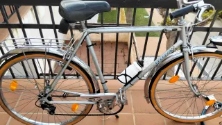 Bicicleta de carretera MBK Super Sprint original de los años 80, una clásica del ciclismo europeo fabricada en Francia. Cuadro de acero ligero talla 54, geometría racing clásica y ruedas de 700c. Ideal tanto para usar en ciudad como para proyecto de restauración o colección vintage. Características: • Cuadro MBK Super Sprint original • Cambio trasero y doble plato delantero • Manillar de carretera con cinta • Portabidón • Ruedas finas de carretera • Estética retro muy bonita La bicicleta está completa, necesitaría ajustes de cambio y frenos, y las cubiertas