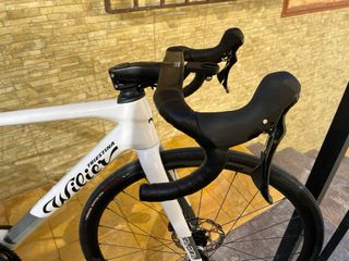 OCASIÓN SEGUNDA MANO IMPOLUTA. 2900 EUROS WILIER 0SL carbono talla L - Manillar integrado de carbono original WILIER - SRAM FORCE ETAP AXS 12 vel electrónico - Ruedas SPEEDSIX EVO 45 tubular - Discos GALFER 140mm - Tubulares TUFO HI-COMPOSITE CARBONO 28" - Sillin carbono - Portabidones carbono - Desarrollo 48/35 10/36 Peso tal cual al foto 7.3 kgs