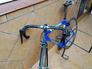 Bicicleta de carretera Wilier en color azul. Tiene señales de uso, cinta de manillar nueva, cubiertas en buen estado. Talla 53. La compré hace poco ,salí una vez pero la veo pequeña para mí . Tiene una fisura en el cuadro, la señalo en una foto con el dedo. Escucho ofertas razonables. - Cuadro de aluminio. - Manillar de carretera. - Ruedas de 700c.