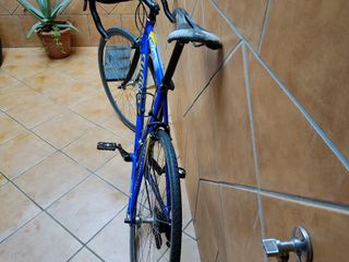 Cuadro y horquilla de carbono y tija de aluminio, bicicleta muy ligera y rígida, ideal para carretera. Cambios Shimano 105 de 10 velocidades, tanto plato como piñones, en perfecto estado. Desviador delantero y trasero Shimano 105, funcionamiento suave y preciso. Ruedas 700x25C. Llantas perfil bajo. Frenos zapata. Manillar aerodinámico y cómodo para largas rutas. Mantenimientos al día, bici cuidada, lista para rodar; cinta de manillar ligeramente usada.