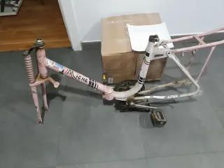 Se vende cuadro de bicicleta plegable estilo bicicross en color rosa. - Cuadro de bicicleta plegable. - Color rosa. - Estilo bicicross.