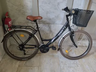 Bicicleta de paseo Town 7.0, talla mediana. Ruedas 26. 3x7 velocidades. Llantas negras. Está nueva nueva. Hashtags: Cesta, parrilla trasera, guardabarros, pata de apoyo, sillín comodísimo, cubiertas anchas para no resbalar en días de lluvia. (13)