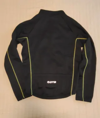 Chaqueta de ciclismo negra con detalles en amarillo neón. Talla M - Cremallera frontal. - Cuello alto. - Logo de la marca DTB en el pecho. - Bolsillos traseros