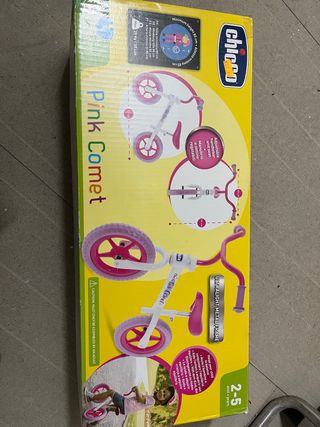 Bicicleta de aprendizaje Chicco Pink Comet, ideal para que los más pequeños empiecen a familiarizarse con el equilibrio. Su diseño ligero y ajustable la hace perfecta para los primeros paseos. - Modelo: Pink Comet - Marca: Chicco - Edad recomendada: 2-5 años - Altura mínima: 85 cm - Peso máximo: 25 kg - Material: Estructura metálica ultraligera - Manillar y sillín ajustables