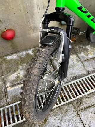 Bicicleta infantil de 16 pulgadas, ideal para los más pequeños. - Color verde brillante. - Frenos delanteros y traseros.