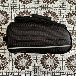 Cestillo negro de la marca Btwin, ideal para bicicletas. - Diseño compacto y funcional. - Cierre con cremallera. - Bolsillo frontal de malla. - Detalles reflectantes.