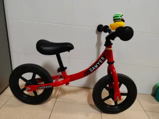 Bicicleta de equilibrio marca Sawyer en color rojo. Ideal para los más pequeños. - Marco de metal. - Ruedas negras. - Asiento negro. - Divertido adorno de pato en el manillar.