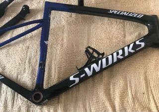 Cuadro de bicicleta S-Works Tarmac SL6 Disc en talla T56. Versión equipo Quick Step combina carbono visto con pintura azul. Muy cuidado, en muy buen estado. Incluye tija, dirección y Pedalier Ceramic Speed - Diseño aerodinámico y ligero. - Color: Negro y azul. - Horquilla sin cortar a ras. tiene margen posibilidad de comprar manillar Black Inc 42cm y potencia 120 y Bieas Sworks con potenciometro y ligerísimas, con platos ovalados Qring 52-36. preguntar.