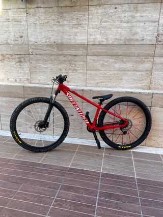 En descuento! Bicicleta Specialized Rockhopper en color rojo, ideal para dirt jump y wheelies/calle. Se ha cuidado mucho y se le han añadido extras tanto como mejoras. Ha sido revisada y mantenida por expertos conocidos por su experiencia. (Cicles Serrano, Blanes) ✅Todo ha sido montado por ellos. Extras/mejoras: ✅Frenos Hidráulicos Shimano ✅ Neumáticos Maxxis Pintados(de los mejores del mercado) ✅ Sillin ajustado para saltos (se puede subir a la medida necesaria) ✅ Puños Esi de goma para mayor agarre y seguridad. ✅Cubreradios de colores para proteger los radios de la rueda y para estetica ➖Talla S para 1,77cm o menos de altura