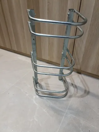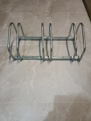 Soporte de aparcamiento para bicicletas fabricado en aluminio. Tiene capacidad para tres bicicletas. - Material: Aluminio. - Capacidad: 3 bicicletas.