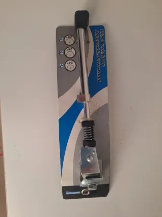 Pata de cabra ajustable para bicicleta de la marca Decathlon. - Compatible con ruedas de 24, 26 y 28. - Material: Metal y plástico.