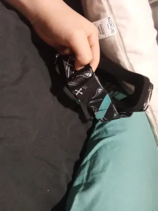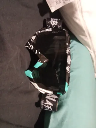 Gafas de esquí o snowboard con diseño llamativo. - Correa con estampado de calaveras y cruces. - Detalle en color turquesa en el marco. - Correa con texto 'BORN FOR'.