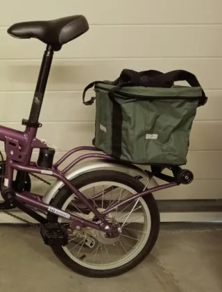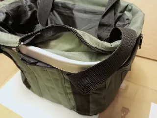 Cesta bolsa plegable, inicialmente para bicicleta. Lavable. Impermeable. Ligera. Gran capacidad. Estructura de aluminio y ejes plásticos extraíbles. Con cremallera y bolsillo interior. Color verde caqui y negro. Cintas regulables. Asas con velcro. Medidas: 35x26x25 cm. Como nueva. Sólo estrenada. #panier cesto cesta bolsa bicicleta plegable bici viaje mochila zaino maleta pack packaging bagaglio bagage compra spesa shopping impermeabile impermeable